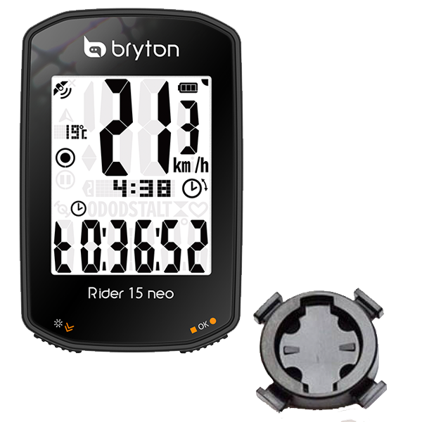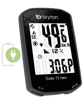 A Rider 10, majd a Rider 15 után érkezett a 15 NEO, amely egy kiforrott alap komputer. Navigáció még nincs benne, mivel ez a funkció már egy másik árkategóriában kezdődik térkép nélkül, míg a térképes modellek ennek akár négyszeresébe is kerülhetnek. Ennek ellenére edzések és túrák nyomon követésére ez a komputer is tökéletesen alkalmas. Az eszköz ellenáll a legnagyobb esőnek is, nyomógombos vezérlése egyszerű, és megjeleníti az okostelefon értesítéseit, valamint a bejövő hívásokat. Így csak akkor kell megállni, ha valóban fontos ügyet kell intéznünk. Az LCD monokróm kijelző jól olvasható napfényben is, sötétedés után pedig állítható a háttérvilágítása, így akár nyári éjszakai túrákon is jól használható marad. Érdekessége, hogy a magasságmérés barometrikus, ami a Garminnál csak a 100 000 Ft feletti kategóriában érhető el, emellett meredekségmérő és hőmérsékletmérő is található benne. A Bryton alkalmazása magyar nyelvű, és gyakorlatilag minden beállítás a telefonos alkalmazáson keresztül történik. Kedvelt funkció az automatikus start-stop, így például a piros lámpánál sem kell ezzel foglalkoznod.