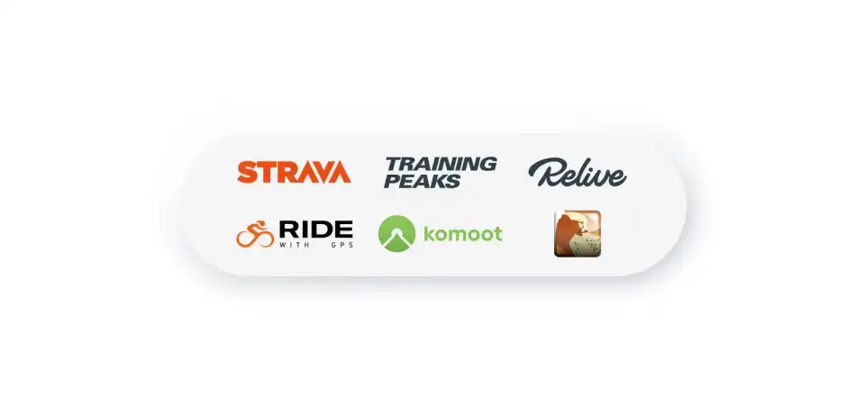 A Komoot, Ride with GPS és Strava segítségével tervezett útvonalak automatikusan megjelennek az alkalmazásfiókodban, így zökkenőmentesen követheted a túráidat.