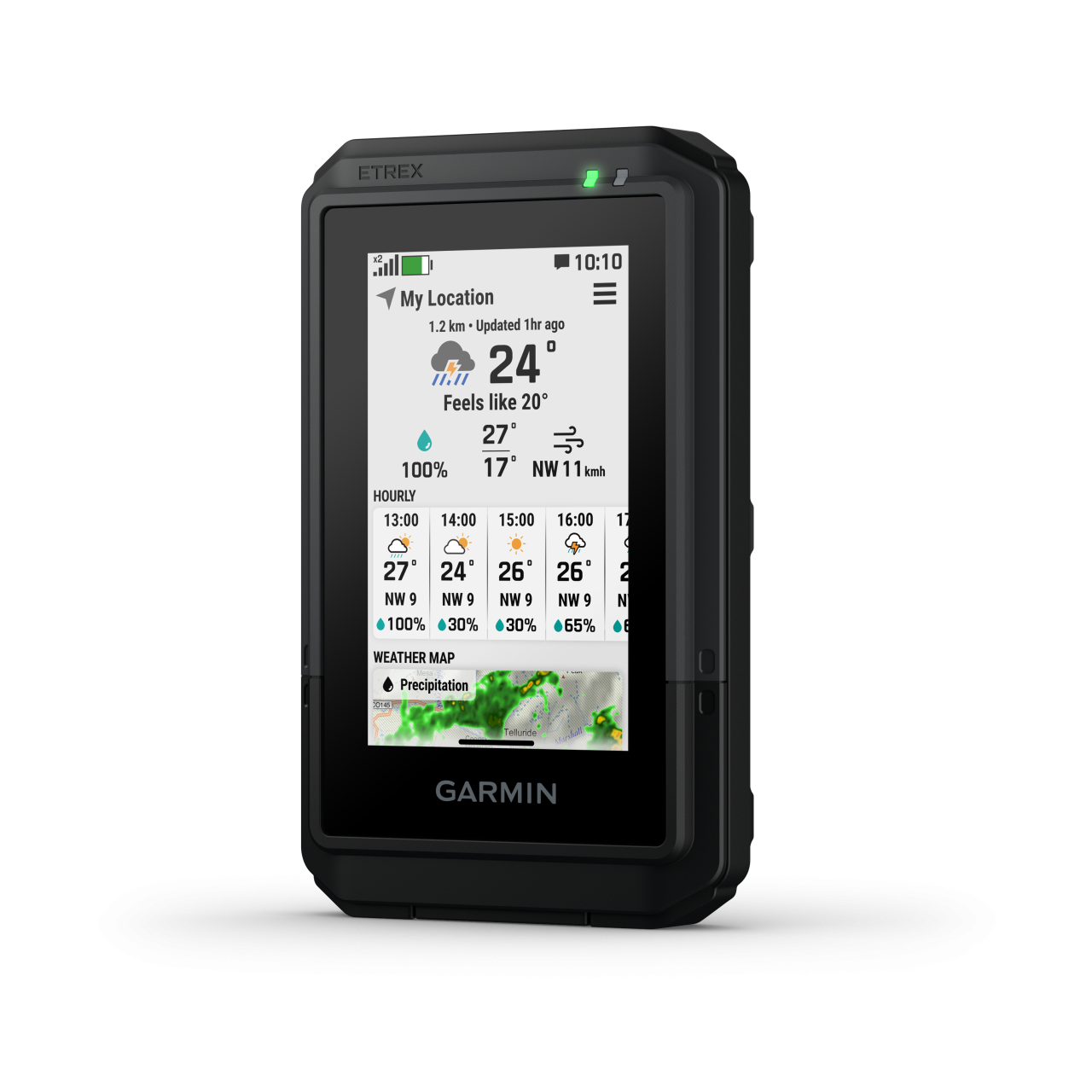 Kapj valós idejű előrejelzéseket, hogy időben reagálhass a változó körülményekre. A funkcióhoz aktív internet- vagy Wi-Fi-kapcsolat, illetve a párosított okostelefonon futó Garmin Explore alkalmazás szükséges.