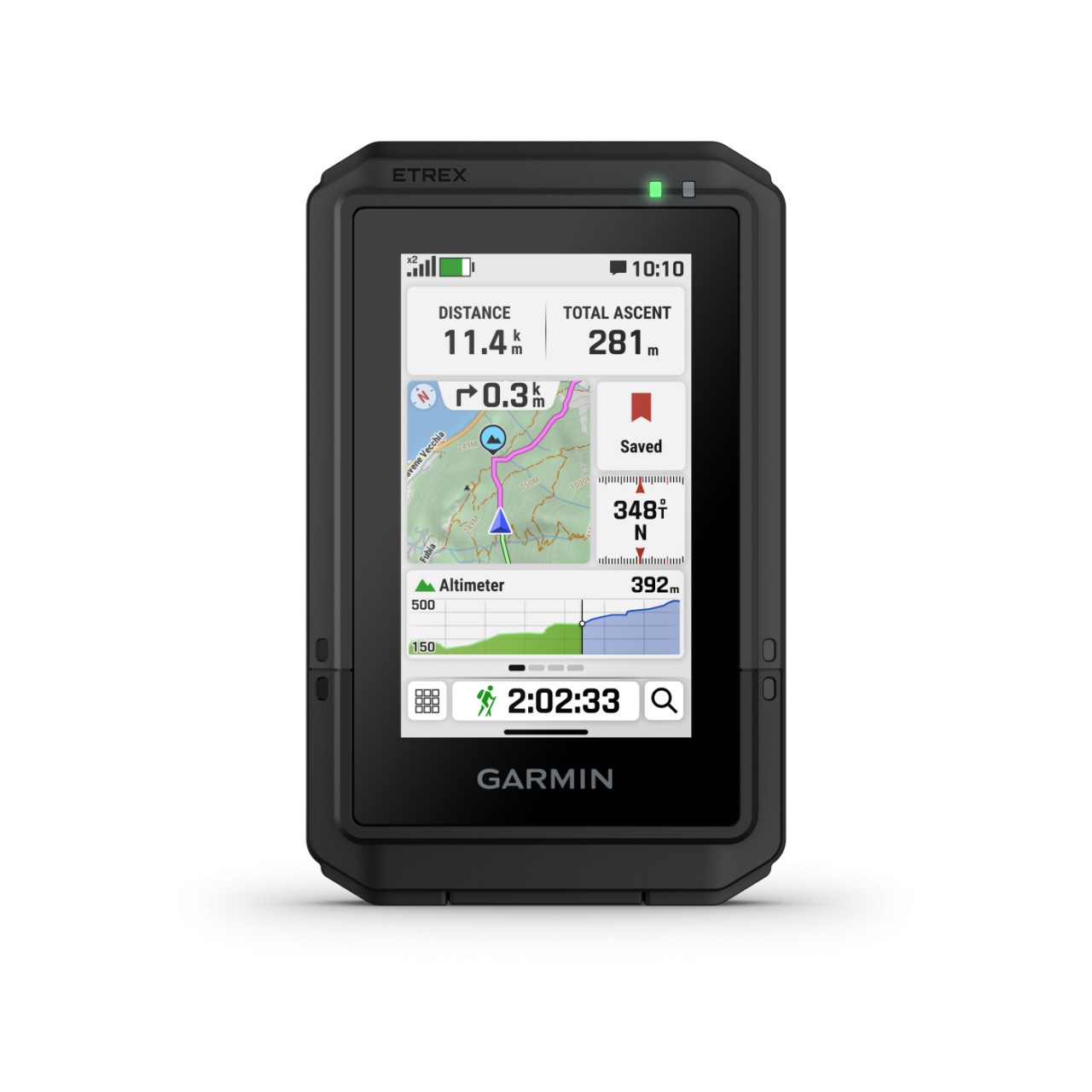 A karcsú, zsebméretű kézi GPS fényes, nagy felbontású, 3″-os színes érintőképernyővel rendelkezik, így az útvonal követéséhez egyszerűen lapozhatsz és nagyíthatsz.
