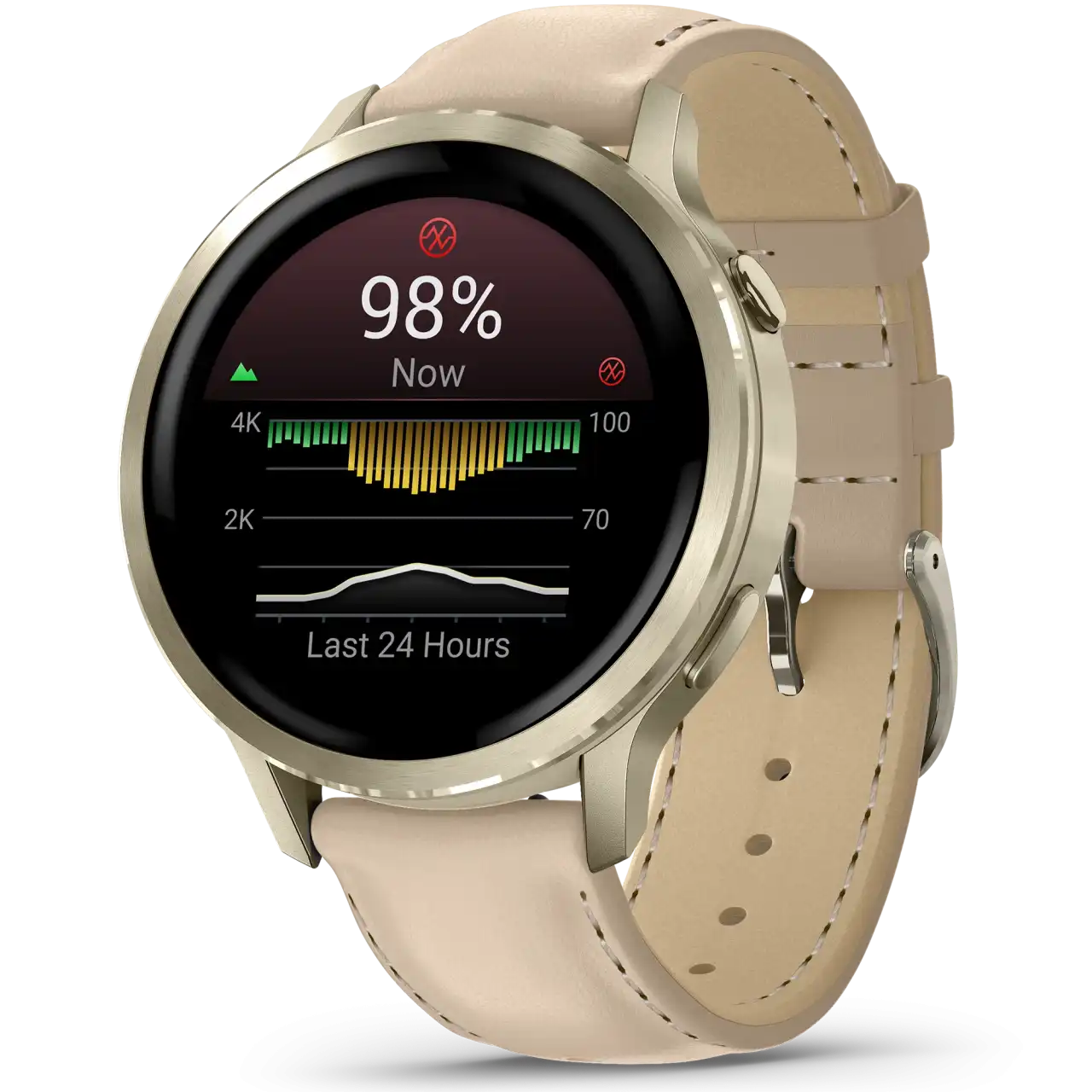 A Garmin Venu® 4 GPS okosóra fejlett egészség- és fitneszfunkcióival segít jobban megérteni tested működését, nyomon követni a mindennapi állapotodat, és tudatosabb döntéseket hozni az egészségedről.