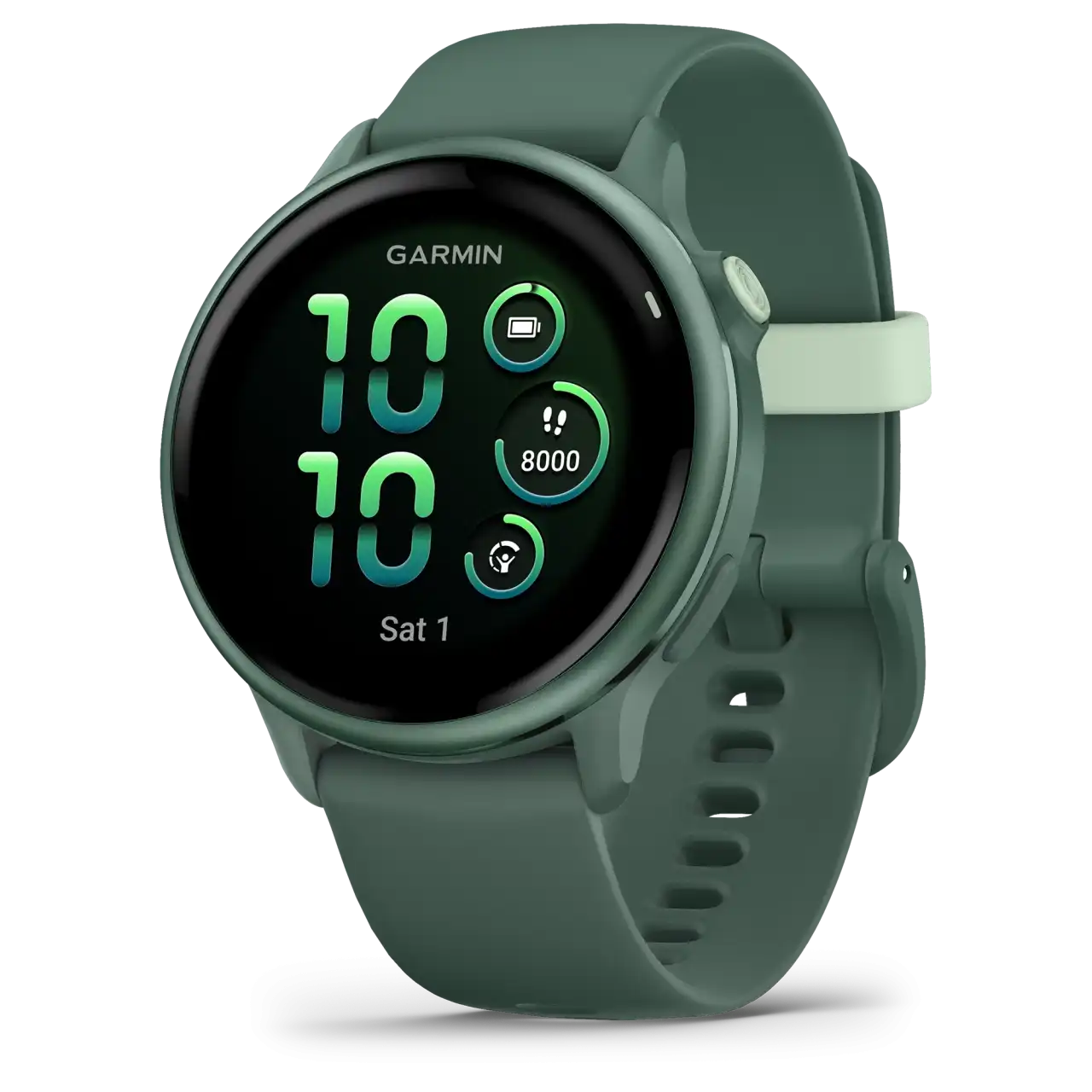 Garmin vívoactive® 6 Metallic Jasper Green: Metál Jáspisz Zöld óraházzal és Jáspisz Zöld szíjjal, a bujtató világos zöld