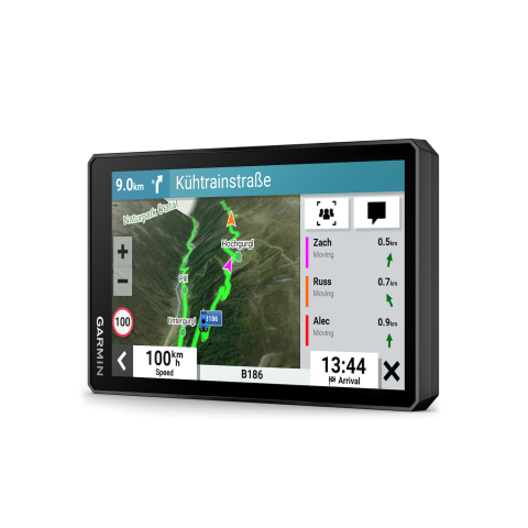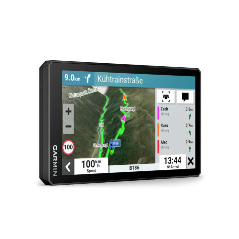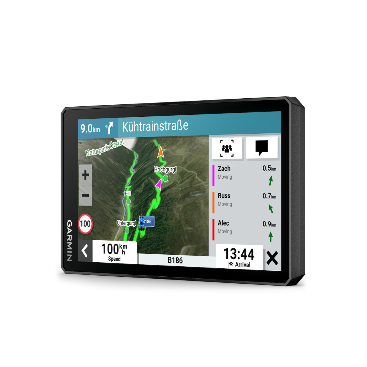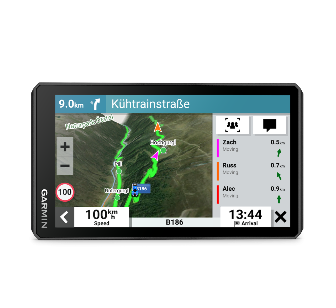 Használd a Tread alkalmazást okostelefonodon és/vagy a Zūmo XT2 eszközön, hogy nyomon kövesd barátaid a Group Ride Mobile funkcióval1. Vagy használd a Group Ride Radio tartozékot2 (ez külön megvásárolható) más Zūmo XT2-vel felszerelt motorostársak követéséhez, ahol épp nincs mobil lefedettség.
