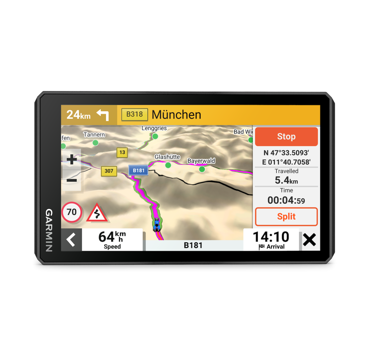 Gyorsan válthatsz az útvonaltérképek, a topográfiai térképek és a műholdas térképek között, így mindig a tökéletes odaillő térképet használhatod a motorozásodhoz.