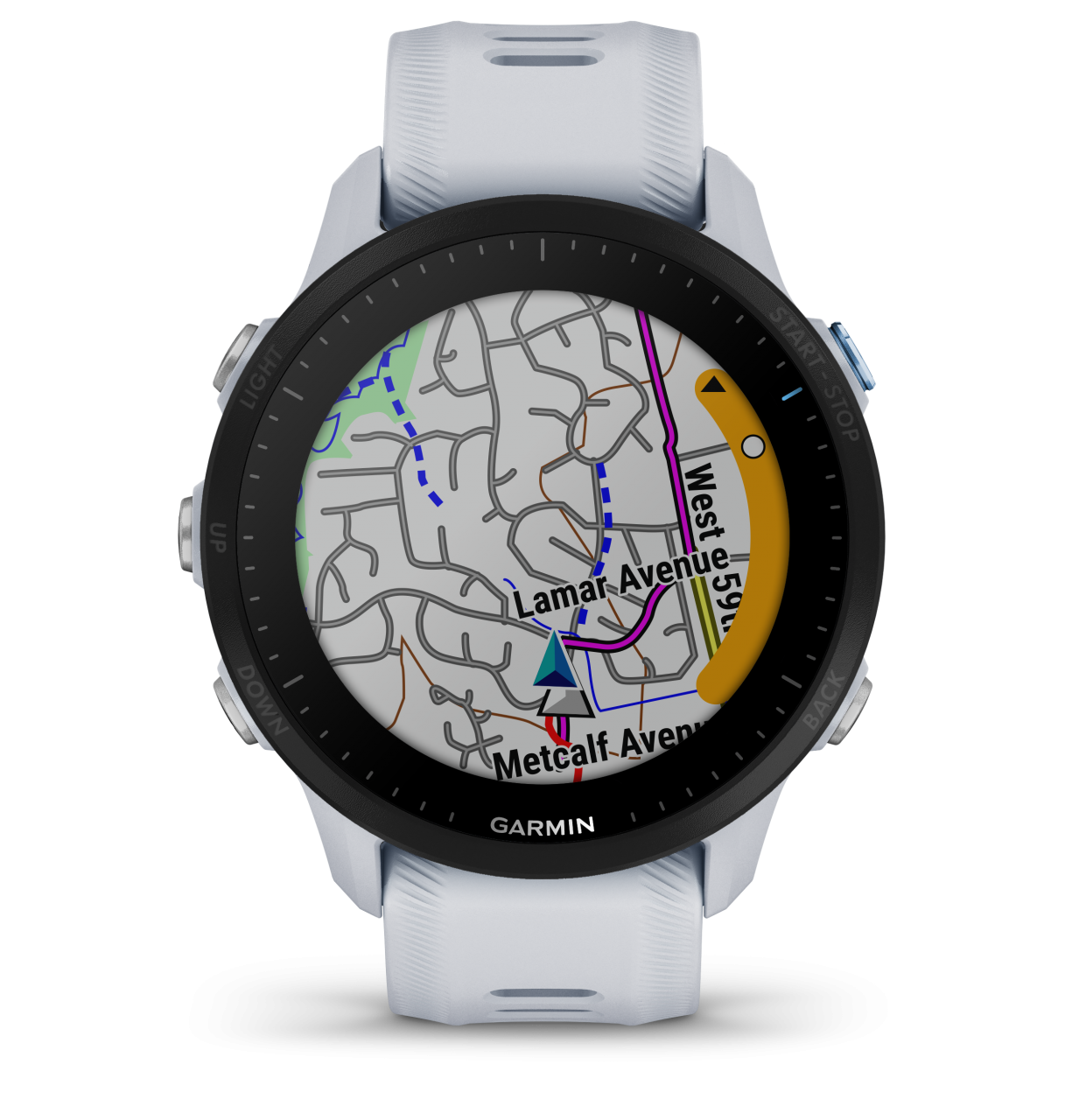 Akár városi utcákon futsz, akár sűrűn borított ösvényeken tekersz, a Forerunner 955 teljes színű, beépített térképet biztosít, hogy a helyes úton maradj.