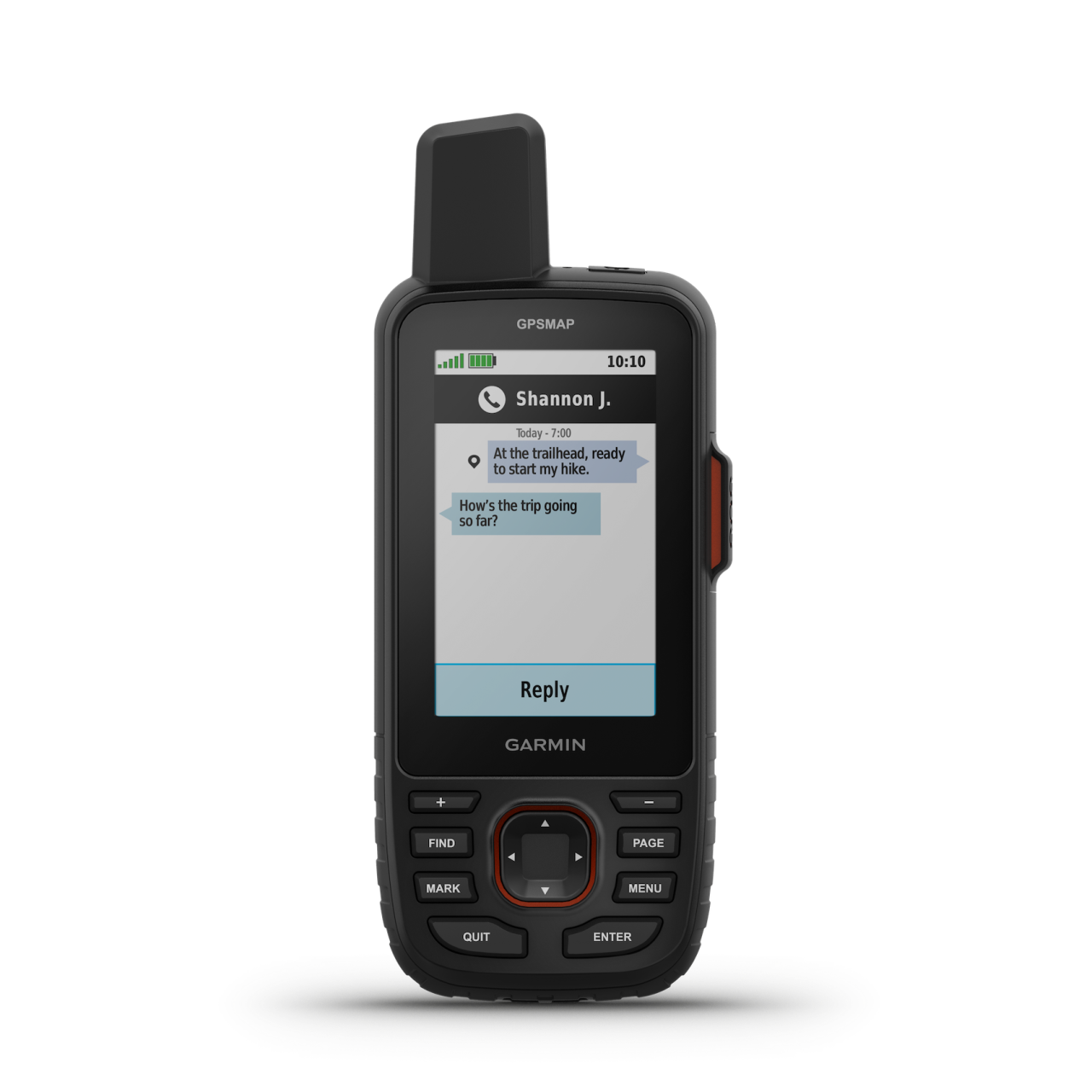 Töltsd le a Garmin Messenger alkalmazást kompatibilis okostelefonodra, és párosítsd a GPSMAP® 67i kézi GPS készülékkel a gyors, egyszerű üzenetküldéshez és a 24/7 SOS-hez, amely nem korlátozódik a mobiltelefon-ellátottsági területekre. Az alkalmazás támogatja a csoportos üzenetküldést is.