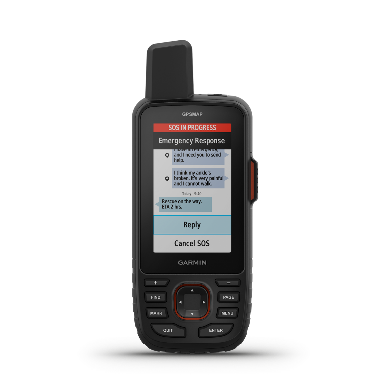Vészhelyzet esetén interaktív SOS-üzenetet indíthatsz a Garmin ResponseSM központnak, amely egy 24 órában működő, professzionális vészhelyzeti koordinációs központ.