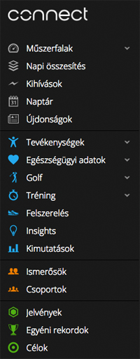 Az edzésnaplózás felülete a Garmin Connect. Ez lehet app, vagy weboldal, lényege, hogy felhős alkalmazás, azaz bárhonnan elérhető.