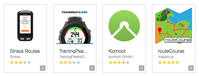 Az alkalmazások lényegében egyedi sportprofilok. Azaz a gyári: kerékpár, futás, cardió, evezés, stb, stb mellé felvehetünk külsős geyedi megoldásokat. Példák: Kommot, Training Peaks, Tetris játék, Csillagfigyelő és millió egyedi profil, ami használja azt az óra tudásából, amire szüksége van, legyen az GPS helyzet, pulzus, pedálfordulat, kézmozgás, pulzus, bármi.