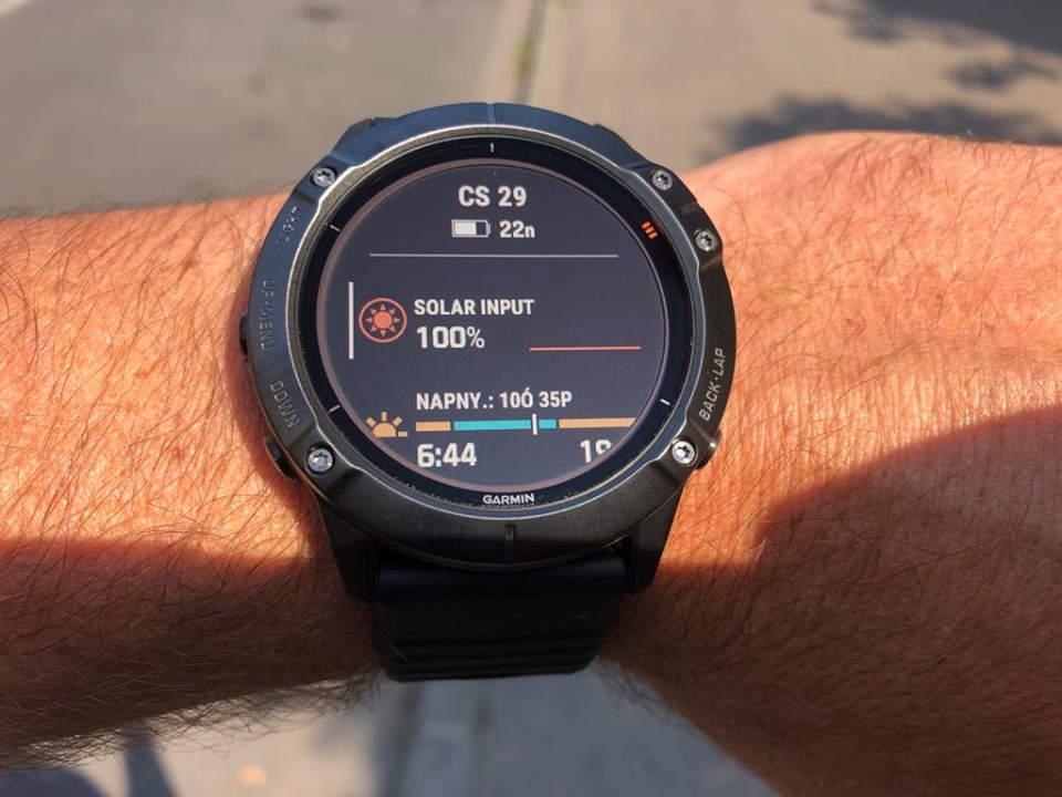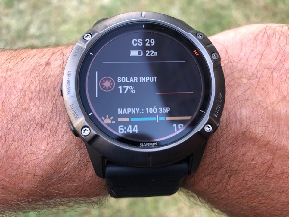 Napelemet kapott a legnagyobb Fénix 6X PRO SOLAR modellje. Tehát Sapphire kristályüveges Solar óra nincs! A napelem nem látható a képernyő alatt helyezkedik el, s nagyjából 10%-ot ad hozzá az óra üzemidejéhez, ezt az üzemidők bekezdésben láthatjuk is.
