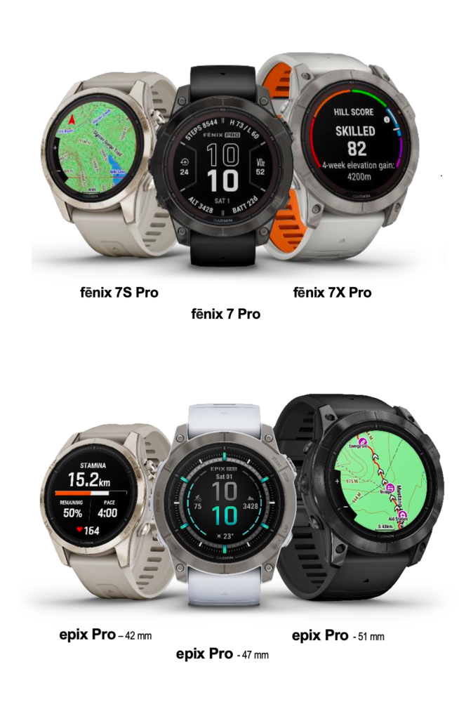 A PRO szériás órák emelt szintet jelentenek a Garminnál. A 2022. januárjában megjelent Garmin Fénix 7 és Epix széria kapott 2023. május legvégén egy ráncfelvarrást. Érdekesség, hogy nem felváltja a meglévő Fénix 7 és Epix szériákat, hanem kiegészíti.
