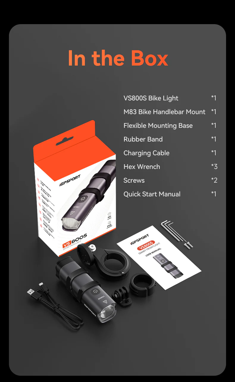 MIT TARTALMAZ Az iGPSPORT VS800 ELSŐ LÁMPA CSOMAG?