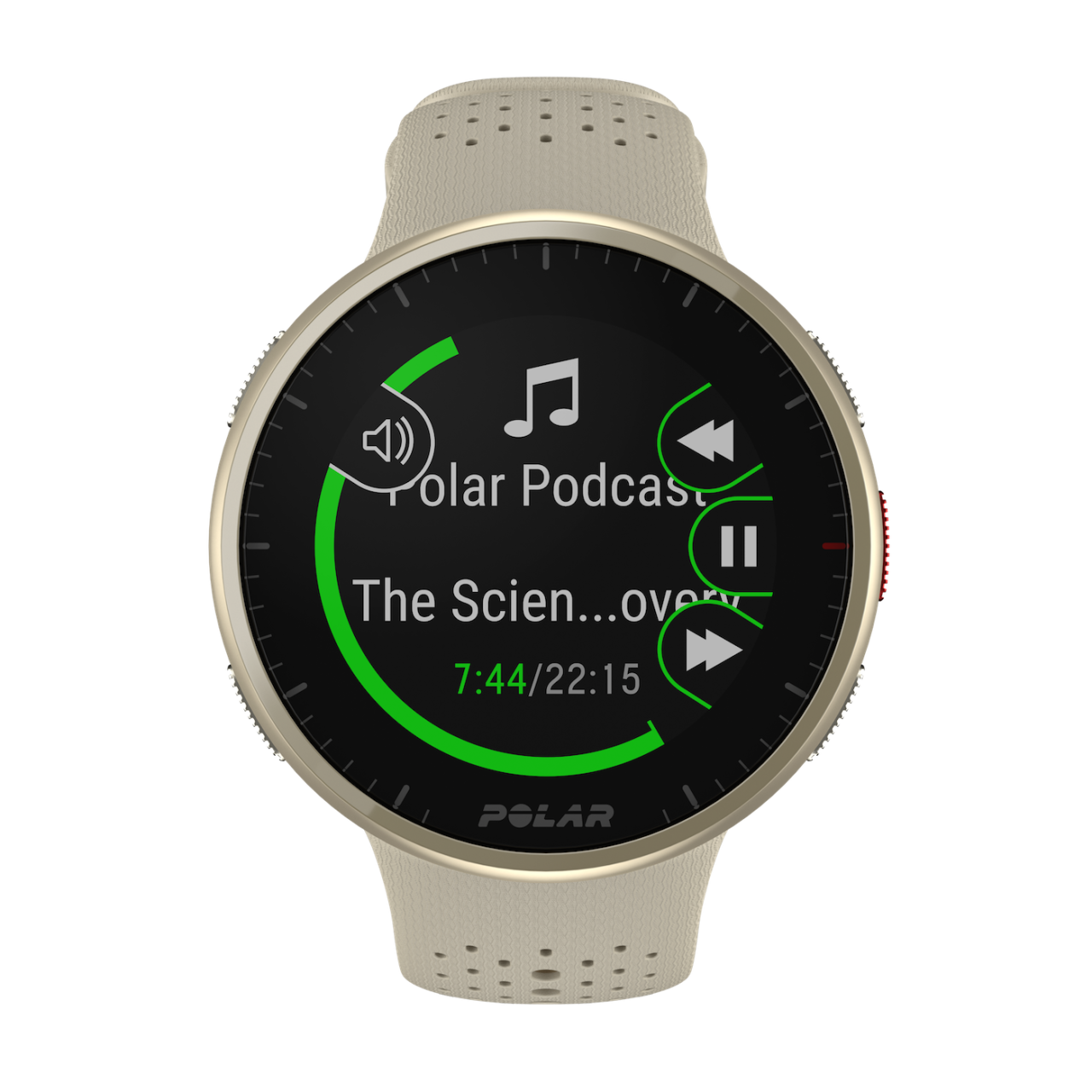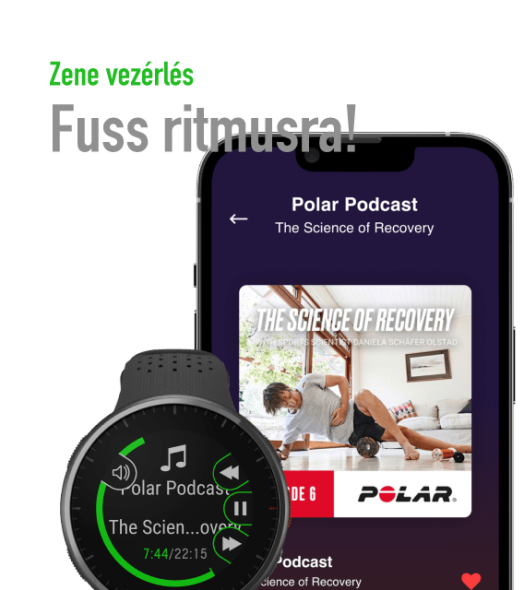 Navigálj a lejátszási listádon, és szabályozd a hangerőt egyenesen az órádról! A Polar óra a telefonod zenelejátszó alkalmazáshoz kapcsolódik, így egyszerűen vezérelheted a zenét, a telefonod elővétele nélkül a csuklódról.