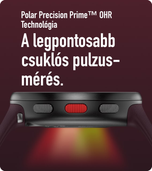 A csuklós pulzusmérés a legkényelmesebb, mi a Polárnál 10db különböző hullámhosszú LED diodát használunk, hogy a fény jobban behatoljon a bőröd alá, s a lehető legpontosabb pulzust kapd vissza az órádra.