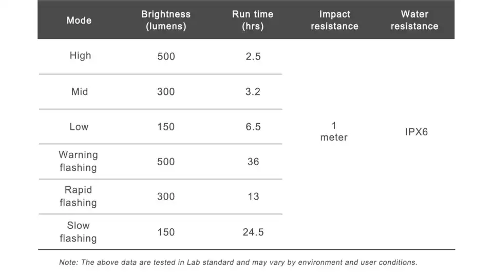 500 lumenes nagy fényerejű világítás, amely ideális éjszakai kerékpározáshoz. A két nagy fényerejű LED lehetővé teszi, hogy valóban belásd az utat sötétben is, a különleges lencsevetítés pedig hatékonyan irányítja a fényt a megfelelő helyre.