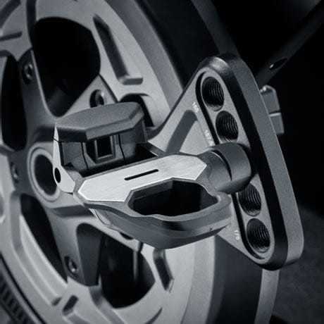 KICKR BIKE 5 féle hajtókarhossz beállítás kínál, melynél nem kell semmit eltávolítani vagy hézagolni. Csak tekerd be kedvenc pedálod a megfelelő méretű hajtókarhosszt kínáló menetbe és kész.