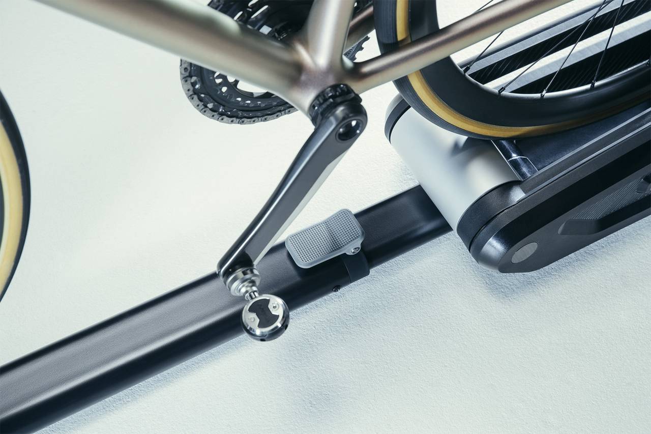 A KICKR ROLLR egyszerűvé teszi a beállításokat. Akár egy Rollr-t több felhasználó is használhat, csak a tengelytávot kell beállítani és rögzíteni az első kereket a gyorsrögtítő karral.